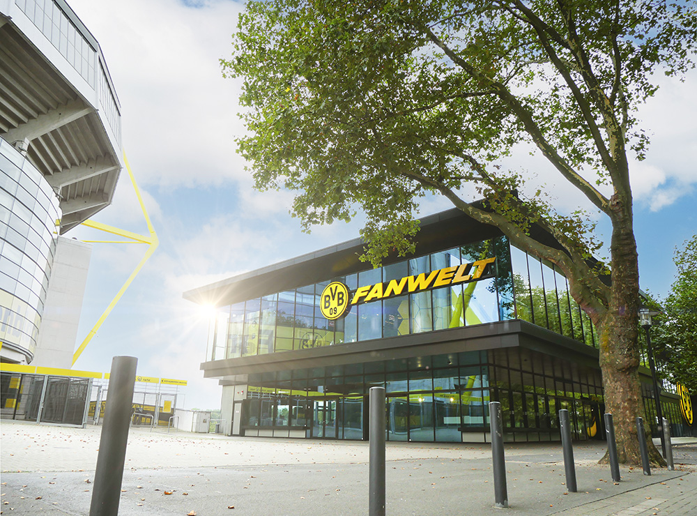 Die BVB FanWelt in Dortmund vereint auf über 2.000 Quadratmetern Fläche viele Fanangebote des schwarzgelben Vereins unter einem Dach: Merchandising, Services und ein Café. Ein weiteres Highlight ist die sogenannte Beflockungsstation, an der Fans ihr eigenes Trikot bedrucken lassen können.