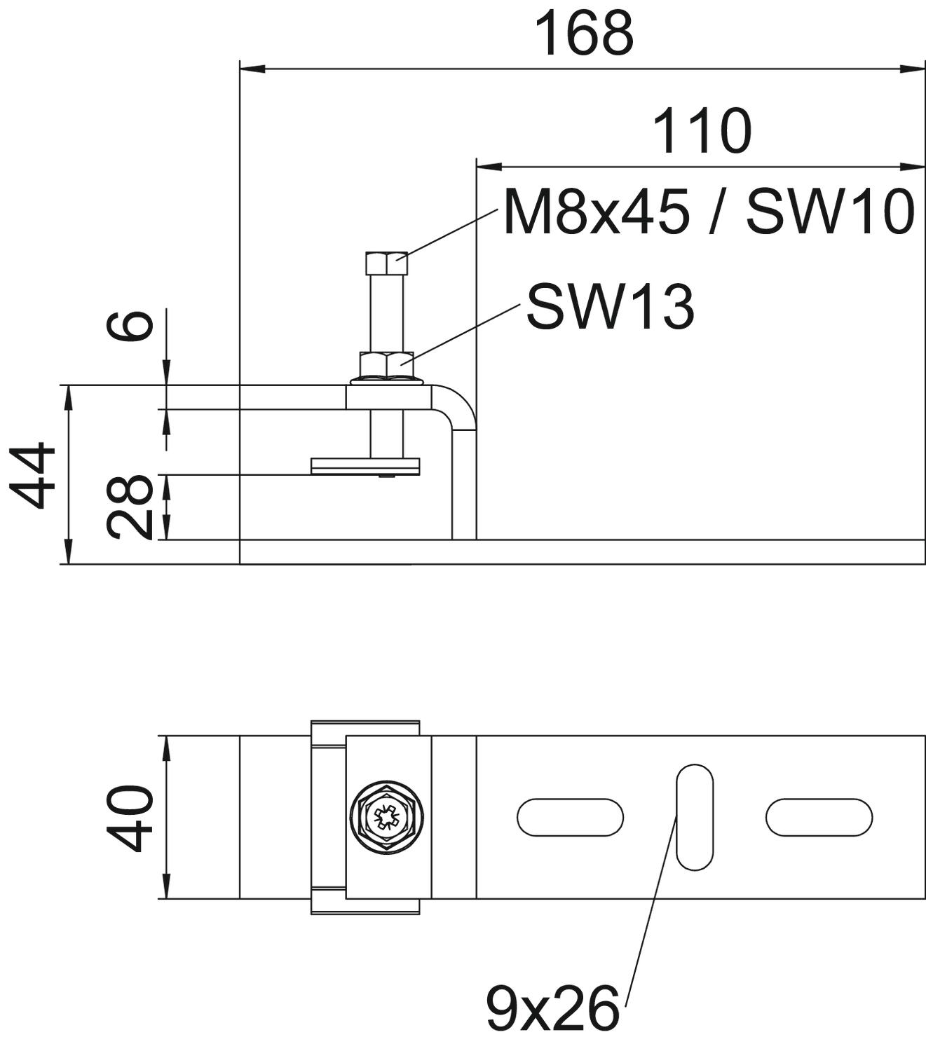 Kõrgus 32 mm Laius 110 mm Materjal Teras Materjali paksus 6 mm Mõõde 168x44x40 Pikkus 168 mm Pinnakate Kuumtsingitud kastmismeetodil Rakendustemperatuuri vahemiku max 120 °C Rakendustemperatuuri vahemiku min -20 °C Roostevaba teras, peitsitud ei Värv tsink - Kõik tüübid