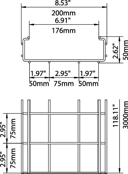 CO2 jalajälg (GWP) hällist väravani 3,75 kg CO2e / 1 Meeter Integreeritud eraldusriiul ilma kaablikandursüsteemi liitmiku tüüp kruvitud Kasulik ristlõige 75 cm² Kasulik ristlõige 7500 mm² Koormuskatsetüüp standardi IEC 61537 kohaselt II tüüp Kõrgus 50 mm Kõrgus 1,97 in Laius 7,87 in Laius 200 mm Materjal Teras Mõõde 50x200x3000 Mõõt A 176 mm Mõõt B 217 mm Mõõt H 67 mm Mõõt I1 75 mm Mõõt L2 (mm) 50 mm Pika sildega teostus ei Pikkus 3000 mm Pinnakate Kuumtsingitud kastmismeetodil Profiili kuju C-kuju Roostevaba teras, peitsitud ei Toimetagamine ei Traadi läbimõõt 4,5 mm Tugedevaheline kaugus 1,0 m 1,1 kN/m Tugedevaheline kaugus 1,5 m 0,7 kN/m Tugedevaheline kaugus 2,0 m 0,4 kN/m Ühenduse teostus ilma jätkuelemendita Värv tsink - Kõik tüübid