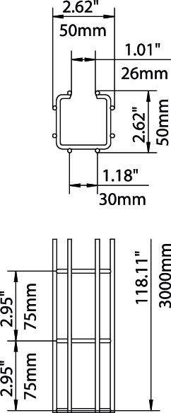 CO2 jalajälg (GWP) hällist väravani 2,7968 kg CO2e / 1 Meeter Integreeritud eraldusriiul ilma kaablikandursüsteemi liitmiku tüüp kruvitud Kasulik ristlõige 13 cm² Kasulik ristlõige 1300 mm² Koormuskatsetüüp standardi IEC 61537 kohaselt II tüüp Kõrgus 1,97 in Kõrgus 50 mm Laius 1,97 in Laius 50 mm Materjal Teras Mõõde 50x50x3000 Mõõt A 26 mm Mõõt B 67 mm Mõõt H 67 mm Mõõt I1 30 mm Pika sildega teostus ei Pikkus 3000 mm Pinnakate Kuumtsingitud kastmismeetodil Profiili kuju C-kuju Roostevaba teras, peitsitud ei Toimetagamine ei Traadi läbimõõt 4,5 mm Tugedevaheline kaugus 1,0 m 0,95 kN/m Tugedevaheline kaugus 1,5 m 0,6 kN/m Tugedevaheline kaugus 2,0 m 0,35 kN/m Ühenduse teostus ilma jätkuelemendita Värv tsink - Kõik tüübid
