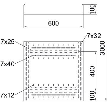 Toote kirjeldusTugeva konstruktsiooniga, pealkäidav, põhjaperforatsiooniga kaablirennisüsteem BKRS, 100 mm küljekõrgusega.