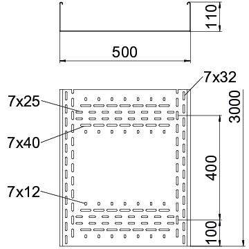 Toote kirjeldusTugeva konstruktsiooniga, pealkäidav, põhjaperforatsiooniga kaablirennisüsteem BKRS, 110 mm küljekõrgusega.