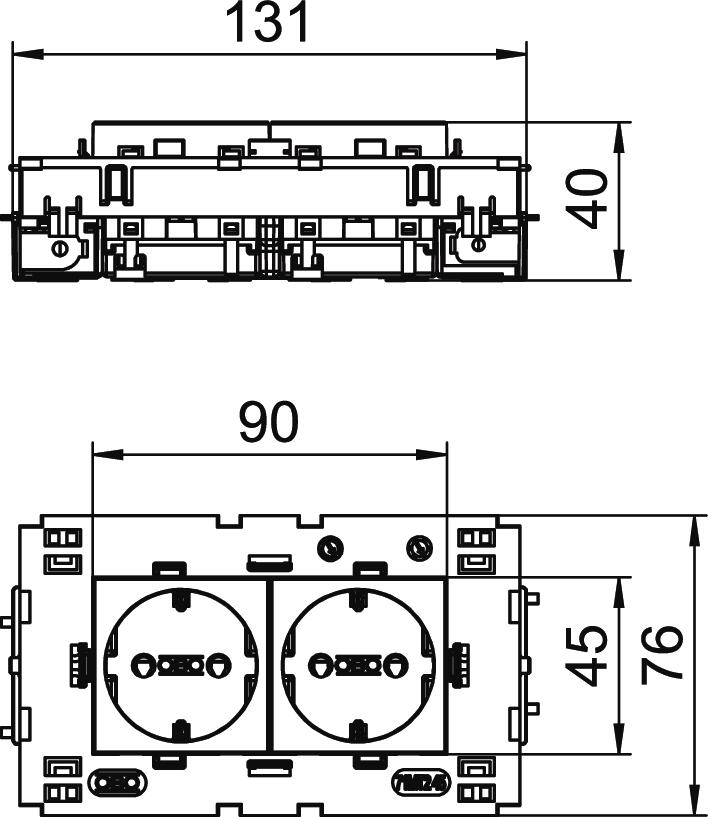 Toote kirjeldusKaitsekontaktiga pistikupesa külgmise ühendusega, kahene 0°, kõrgendatud puutekaitsega, pistikklemmidega, 2-pooluseline, 16 A, 250 V~, ühendusklemmidega vastavalt IEC 60884-1, sobib Rapid 80 seadmekarbikusüsteemidesse paigaldamiseks.