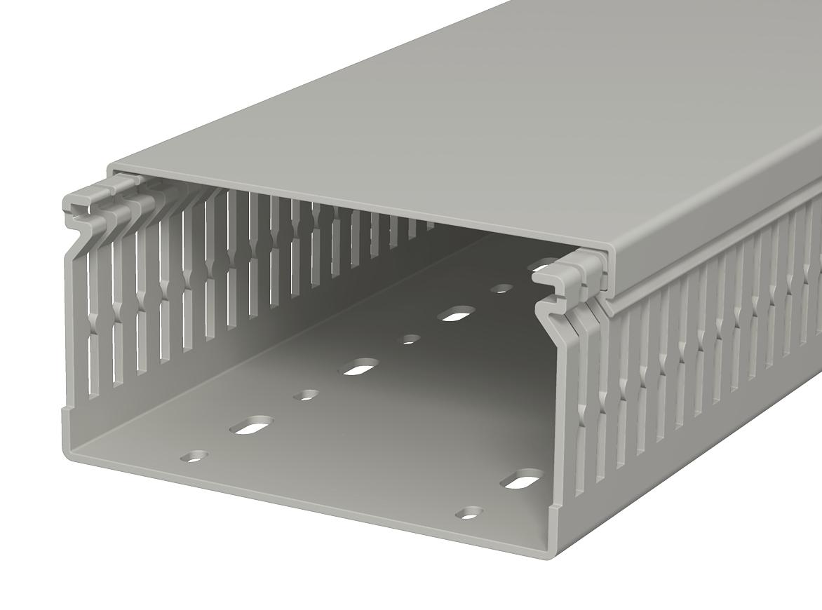 Toote kirjeldusTraadistuskarbik koos ülaosa ja põhjaperforatsiooniga elektrikaablite ja juhtmete horisontaalseks ja vertikaalseks paigaldamiseks elektrikilbis. Teostus meetrilise kanalina. Süsteemi suuruse nimimõõtmed vastavad karbikute sisemõõtmetele. Nagade väljamurdmine toimub ilma tööriistadeta. Tasapinnaline teostus on võimalik tänu ettevalmistatud murdekohtadele. Küljepiludes olevad reljeefid takistavad juhtmete väljakukkumist. Kontrollitud standardi DIN EN 50085-2-3 järgi. Eripikkused tellimisel.