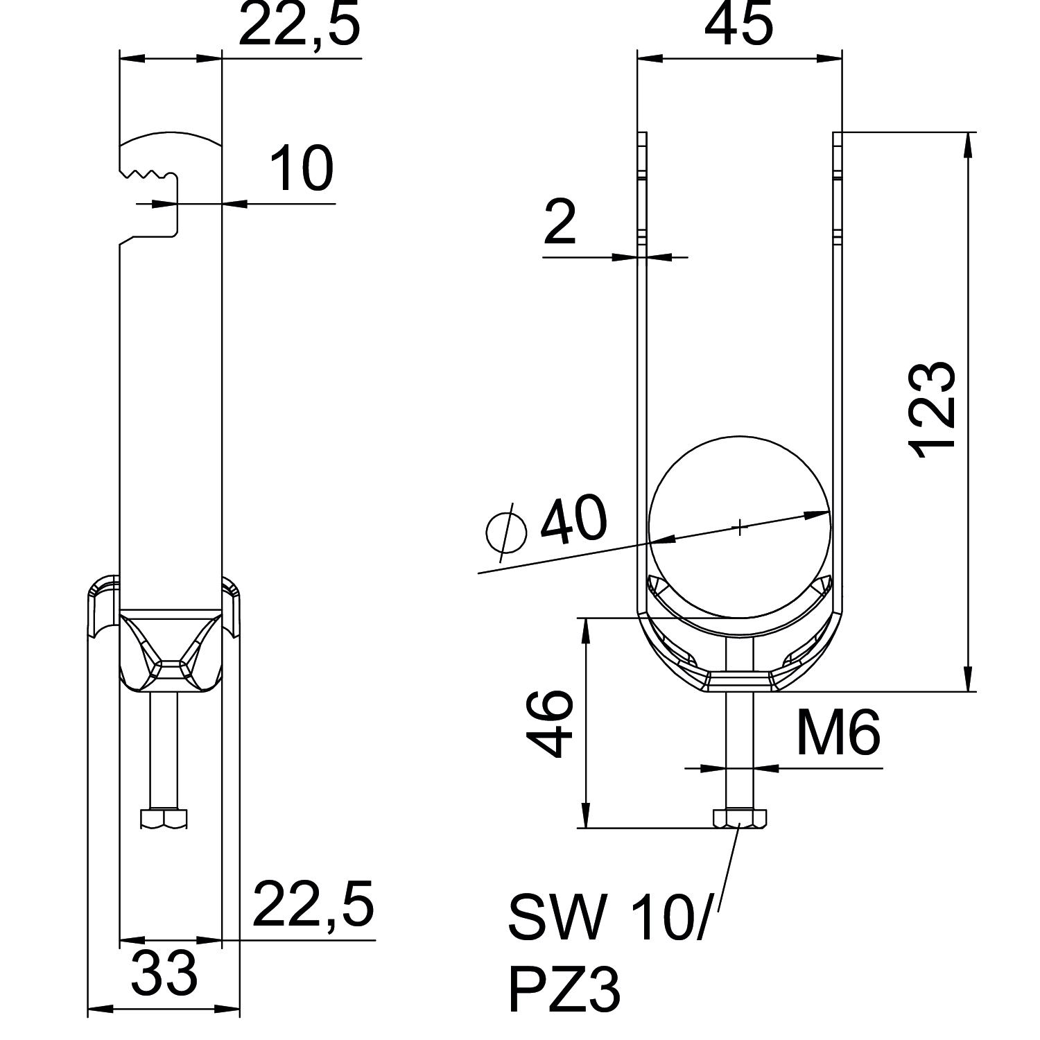 Ava laius 10 mm CO2 jalajälg (GWP) hällist väravani 0,3222 kg CO2e / 1 Tükk halogeenita jah Kaablite/torude arv 2 Keere M6 Koormusvahemiku D max 40 mm Koormusvahemiku D min 34 mm Kõrgus 123 mm Laius 45 mm Lisa materjal Teras Lisa pealispind kuumtsingitud kastmismeetodil Materjal Teras Max Kinnituse pöördemoment 3 Nm Metallvanniga jah Mõõde 34-40mm Mõõt A 22,5 mm Mõõt B 45 mm Mõõt C 33 mm Mõõt G (mm) M6 Mõõt H 123 mm Mõõt L 46 mm Mõõt t 2 mm Paigaldusviis lame profiil Pikkus 22,5 mm Pinnakate Kuumtsingitud kastmismeetodil plaadi materjal Teras Pleki paksus 2 mm Torudele max läbimõõduga 40 mm Torudele min läbimõõduga 34 mm Välismõõtete pikkus 33 mm Vastasplaadiga ei - Kõik tüübid