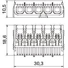Isolatsioonimaterjal Termoplast Juhthoobadega jah Kaabli max läbimõõt 2,3 mm Kaabli min läbimõõt 0,5 mm Klemmide arv 5 Kõrgus 10,45 mm Läbipaistev jah Laius 31,3 mm Leegile vastupidav kooskõlas VDE 0471/DIN 695 osaga 2-1, testimistemperatuur 850 °C Max nimiläbilõige 4 mm² Min nimiläbilõige 0,2 mm² Mitmekordse ühendusjuhtme max läbilõige 4 mm² Mitmekordse ühendusjuhtme min läbilõige 0,2 mm² Mõõde 19,6x31,3x10,5 Nimipinge 450 V Nimivool 32 A Pikkus 19,6 mm Pooluste arv 1 Rakendustemperatuuri vahemiku max 85 °C Rakendustemperatuuri vahemiku min -5 °C ristlõige 5 x 0,2 - 4 mm² mitme-/ühekiulised juhtmed mm² Sobib massiivjuhtidele jah Sobib mitmesoonelistele juhtidele jah Sobib painduvatele juhtidele jah Ühekordse ühendusjuhtme max läbilõige 4 mm² Ühekordse ühendusjuhtme min läbilõige 0,2 mm² Värv läbipaistev - Kõik tüübid