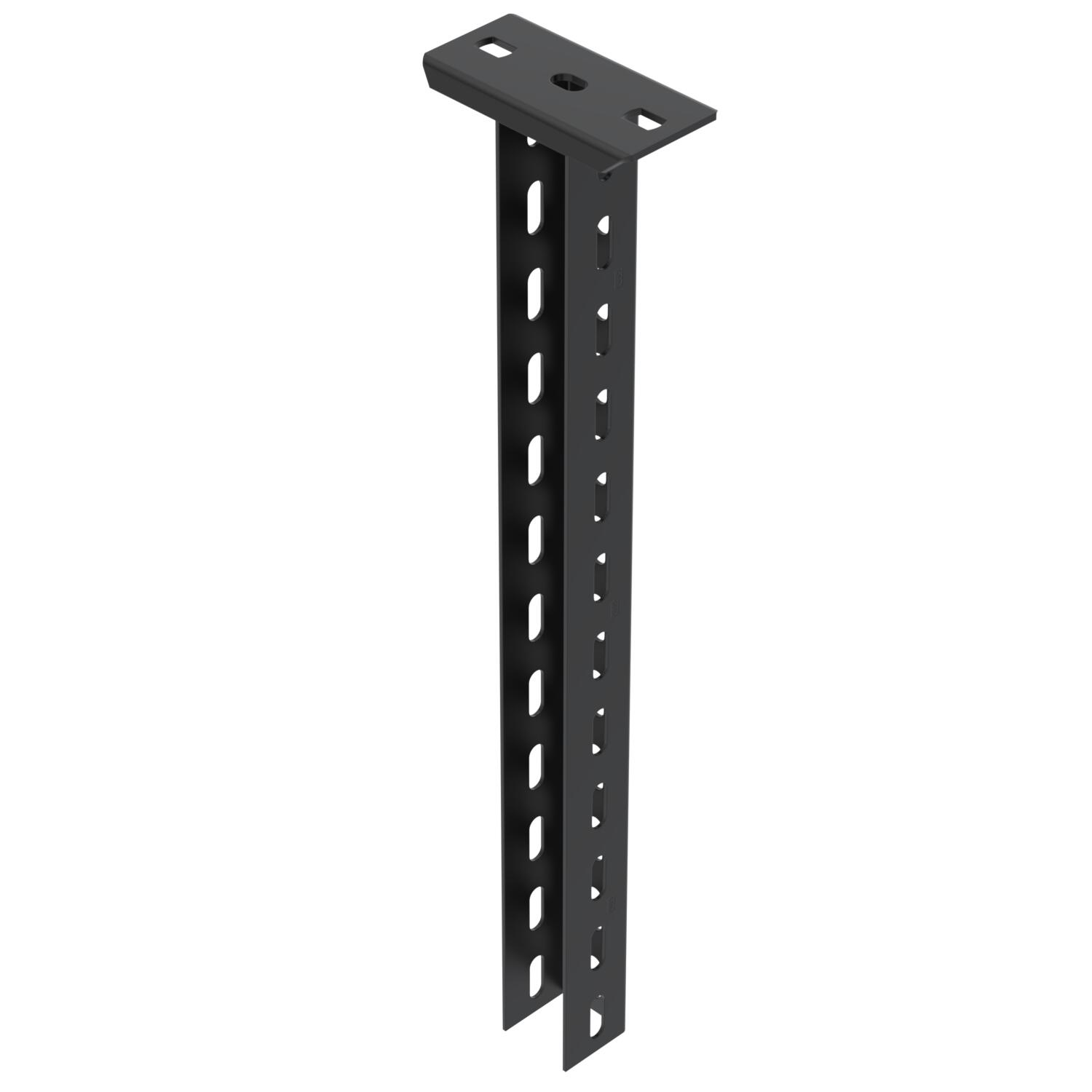 Toote kirjeldusSuspended support made from U profile with welded-on head plate, perforated to 3 sides, for the creation of support constructions for cable trays. Suitable for mounting on horizontal concrete ceilings and steel supports. Wall and support bracket can be mounted on both sides of the U suspended support. Spacer DSK to insert, from bracket width 400 mm or when mounting the bracket on the end of the suspended support. With black powder coating.